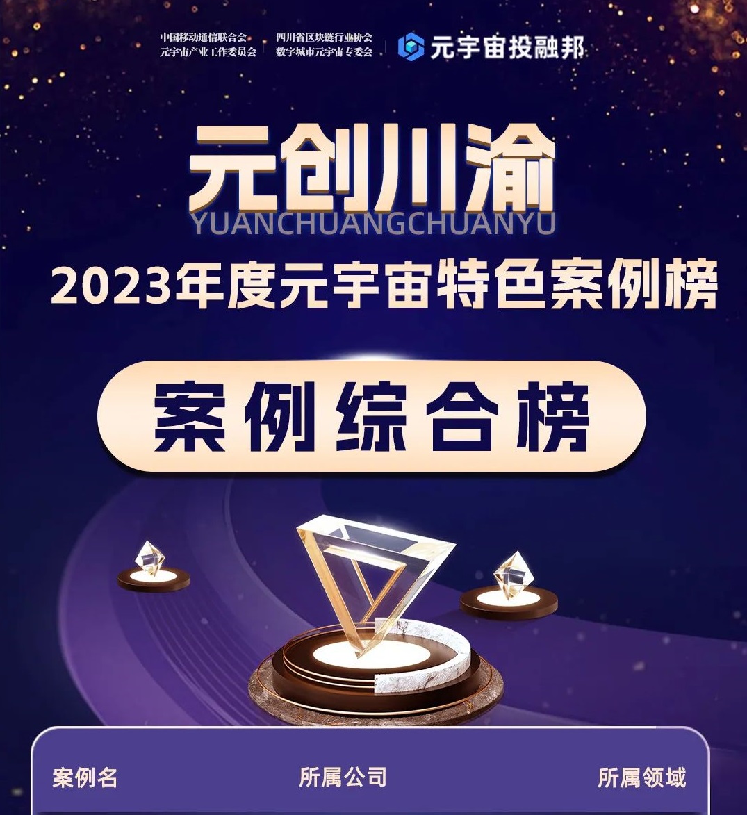 為更全面地調(diào)研展示川渝地區(qū)元宇宙產(chǎn)業(yè)發(fā)展的現(xiàn)狀,元宇宙投融邦聯(lián)合四川省區(qū)塊鏈行業(yè)協(xié)會數(shù)字城市元宇宙專委會、成都中廣電范應(yīng)用產(chǎn)業(yè)研究院、數(shù)字產(chǎn)權(quán)創(chuàng)新(成都)基地、OPENCITY共創(chuàng)社區(qū)、重慶金融科技研究院編寫了《川渝地區(qū)元宇宙產(chǎn)業(yè)發(fā)展藍(lán)皮書(2023)》并聯(lián)合其他機(jī)構(gòu)共同發(fā)布“元創(chuàng)川渝·2023年度元宇宙特色案例榜”,旨在為川渝地區(qū)元宇宙應(yīng)用落地提供有效路徑參考,向全國展示川渝地區(qū)在元宇宙落地方面的應(yīng)用探研究和實(shí)踐探索現(xiàn)狀。