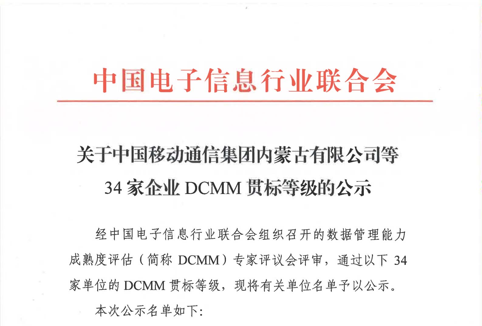 近日,中國電子信息行業(yè)聯(lián)合會(huì)公布了最新一批獲得國家數(shù)據(jù)管理能力成熟度(簡(jiǎn)稱“DCMM”)等級(jí)證書的企業(yè)名單,君逸數(shù)碼成功獲評(píng)數(shù)據(jù)管理能力成熟度穩(wěn)健級(jí)(3級(jí))認(rèn)證,標(biāo)志著君逸數(shù)碼數(shù)據(jù)管理能力達(dá)到了行業(yè)領(lǐng)先水平。