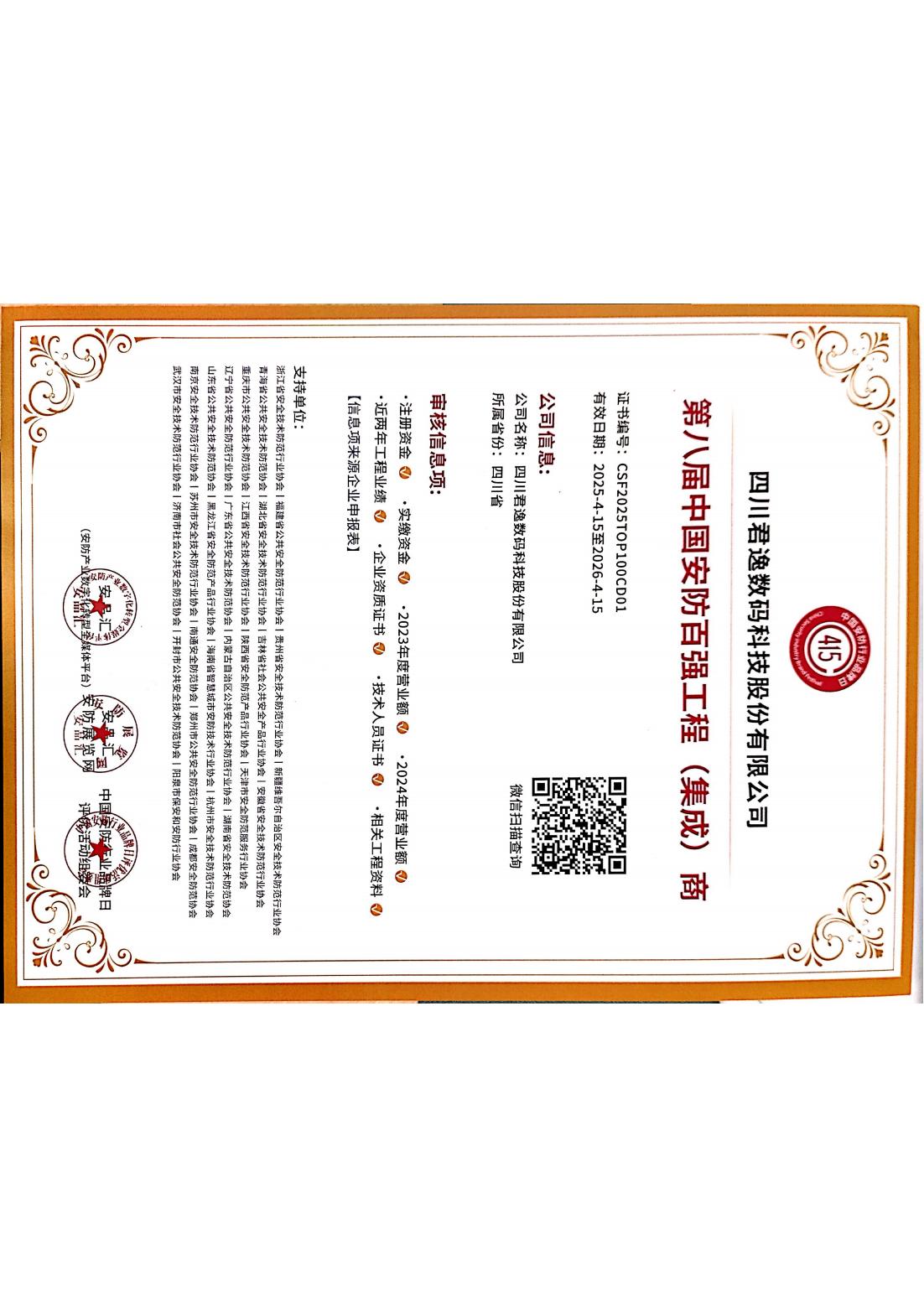 4月15日,“2025中國安防行業(yè)品牌日”活動在杭州隆重舉行。君逸數(shù)碼憑借在安防領域卓越的技術創(chuàng)新能力和標桿項目實施經(jīng)驗,成功斬獲“第八屆中國安防百強工程(集成)商”及“2025年度中國安防行業(yè)優(yōu)秀解決方案服務商”兩項榮譽。