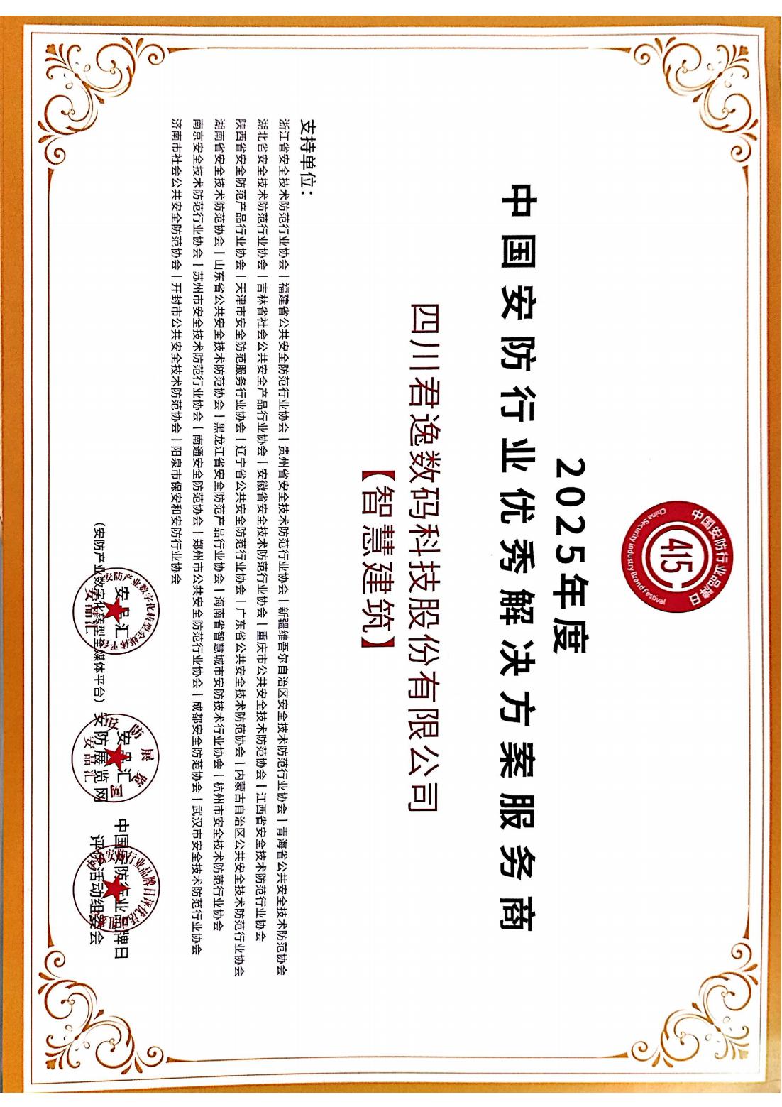 2025年度中國安防行業(yè)優(yōu)秀解決方案服務商