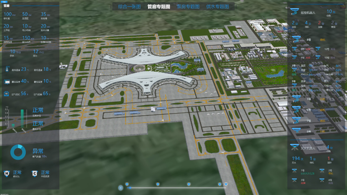 成都市天府國際機場智慧管廊項目涉及工作區(qū) 7.8km 、航站區(qū) 3.05KM、飛行區(qū) 1KM,共計 11.8 公里,還包括東西干道二條下穿隧道和空港三路人行下穿隧道內的弱電監(jiān)控系統(tǒng),其中綜合管廊內涉及綜合倉、電力和冷熱倉的弱電工程大致可分為控制、監(jiān)控及通信系統(tǒng),控制主要對管廊內溫濕度、風機、照明、消防設備和水系統(tǒng)進行調節(jié),監(jiān)控主要涉及巡檢機器人、攝像機視頻和吊裝口的紅外對射,其中也涉及到人員進出口的人臉識別系統(tǒng),管廊內所有控制及監(jiān)控系統(tǒng)全部接入至市政監(jiān)控平臺,以仿真三維圖形展示方式來進行集約化控制和維護,東西干道下穿、視頻監(jiān)控、通信、廣播、信息板及部分市政控制系統(tǒng),隧道內的弱電系統(tǒng)均和 1、2、 3、4 號隧道系統(tǒng)集成一體匯聚至市政監(jiān)控中心。