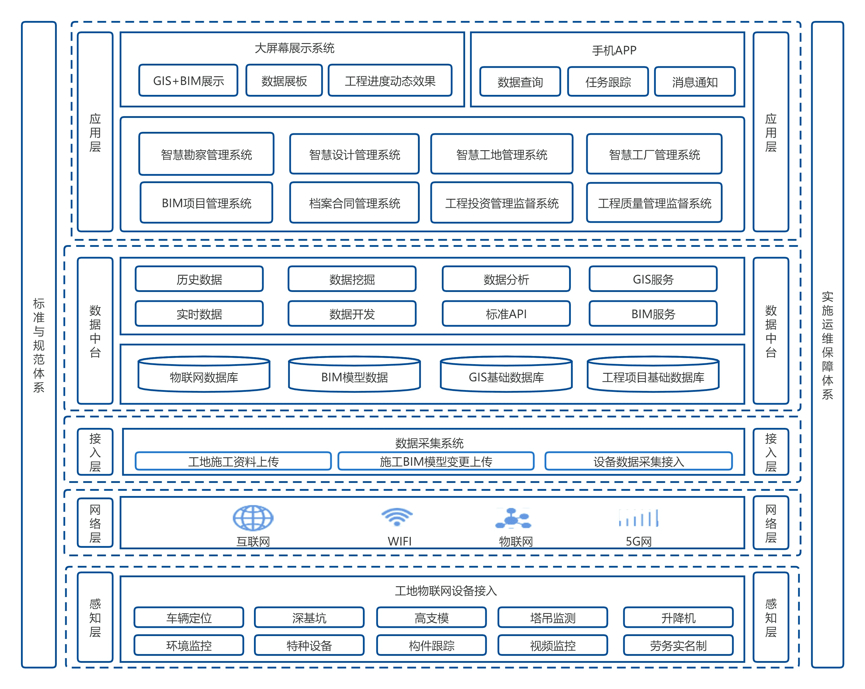 城市基礎(chǔ)設(shè)施建設(shè)是推進(jìn)城市化進(jìn)程必不可少的物質(zhì)保證,是實(shí)現(xiàn)國家或區(qū)域經(jīng)濟(jì)效益、社會(huì)效益、環(huán)境效益的重要條件,對(duì)區(qū)域經(jīng)濟(jì)的發(fā)展具有重要作用,全國各地方政府、企業(yè)、務(wù)工人員紛紛踴躍參與。為提高城市基建品質(zhì),國家對(duì)城市基建工程項(xiàng)目在安全、環(huán)保、質(zhì)量、管理、信息化上的要求提升至新高度。對(duì)工程建設(shè)單位而言,這樣的要求以目前的工作流程、方式、管理水平來說難以達(dá)到。隨著《國務(wù)院辦公廳關(guān)于促進(jìn)建筑業(yè)持續(xù)健康發(fā)展的意見》(國辦發(fā)[2017]19號(hào))、《建筑業(yè)發(fā)展“十三五”規(guī)劃》、《住房城鄉(xiāng)建設(shè)科技創(chuàng)新“十三五”專項(xiàng)規(guī)劃》等國家各項(xiàng)政策不斷落地,BIM、智慧工地、大數(shù)據(jù)、互聯(lián)網(wǎng)+、虛擬全息、增強(qiáng)交互、人工智能等技術(shù)得到廣泛應(yīng)用,建筑產(chǎn)業(yè)轉(zhuǎn)型升級(jí)的方向也開始明確。